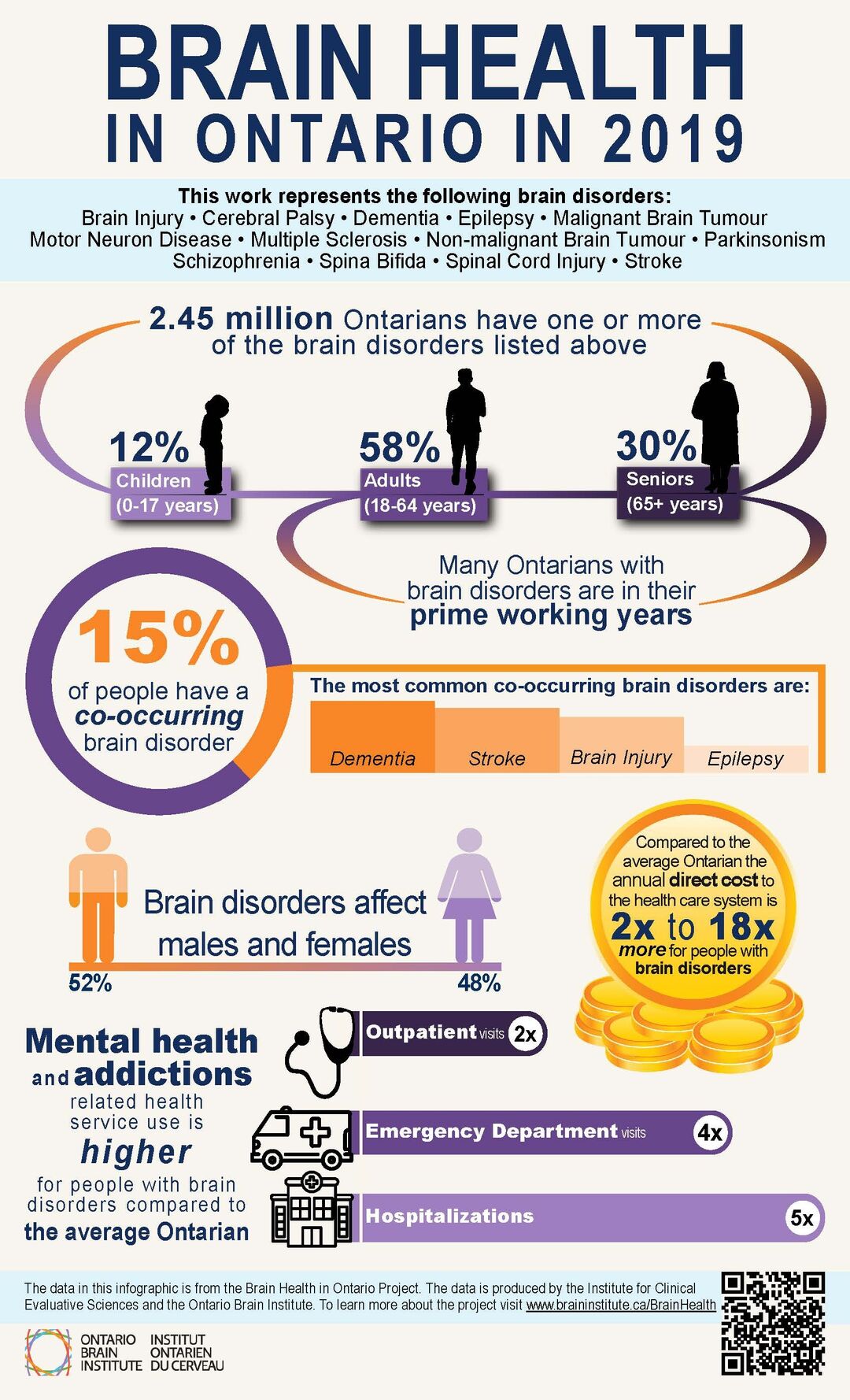 Using health administrative data, the Brain Health in Ontario (BHIO) report, provides an understanding of the prevalence, incidence, cost, and co-occurrence of brain disorders in the province. Findings confirm that one in three Ontarians are living with a brain disorder or will develop one in their lifetime.